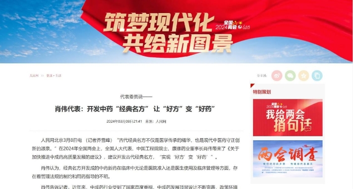 人民网——《肖伟代表:开发中药“经典名方” 让“好方”变“好药”》