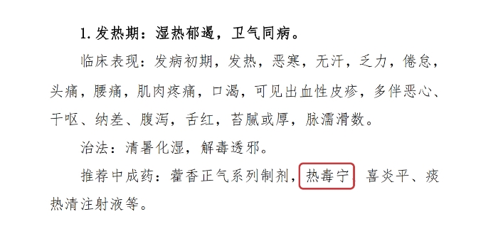 另一份《登革热诊疗计划(2024版)》中也详细先容了怎样运用中医中药的诊疗要领来搪塞登革热疾病,,,,,其中在病情“发热期”和“极期”,,,,,计划都推荐使用热毒宁注射液来控制和治疗病证。。。。。。。。